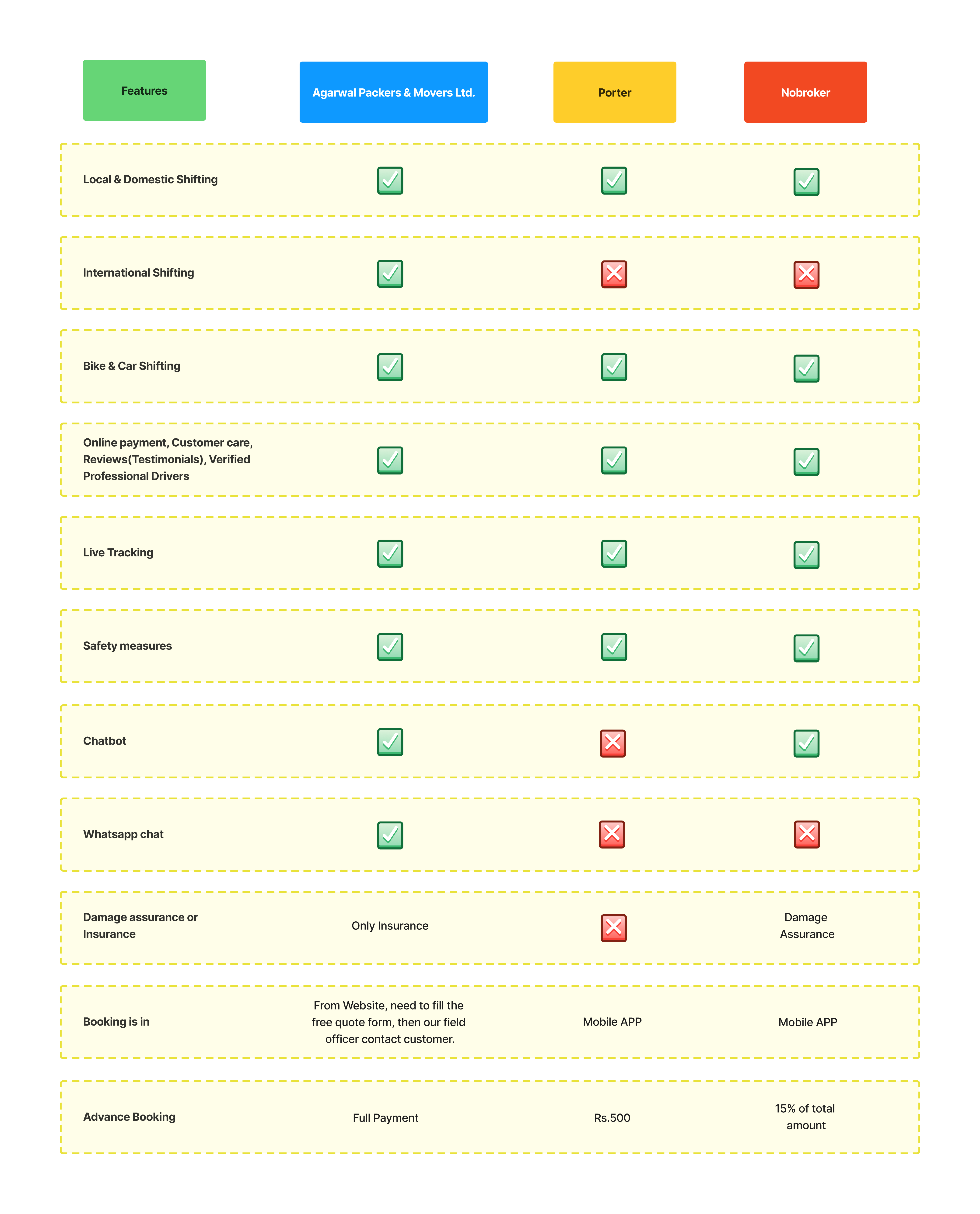 - Analyze competitors like porter, nobroker, agarwal packers and movers to identify best practices and areas where your platform can differentiate.
